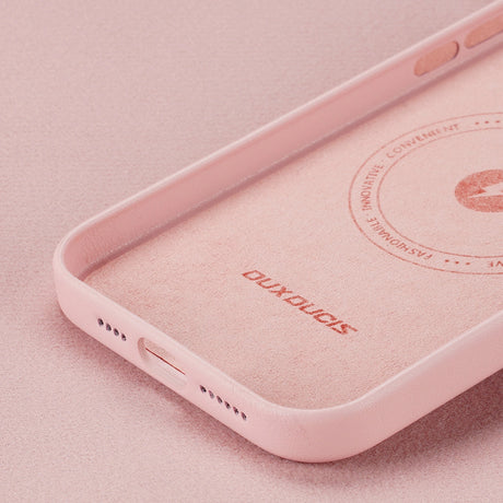 Dux Ducis Grit Leather Case for iPhone 14 Plus Elegant Faux Leather Cover (MagSafe Compatible) Pink