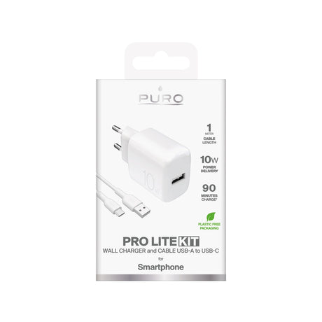 Puro PROLITE 10W USB-A vægoplader + USB-A - USB-C kabel 1,2 m - hvid