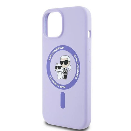 Karl Lagerfeld Silicone Karl&Choupette Heads Ring MagSafe iPhone 15 Case - Purple