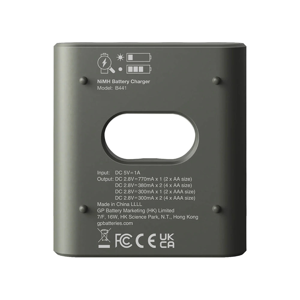 GP:s Everyday Charger B441 er en kompakt og sikker batterioplader med USB-tilslutning.
