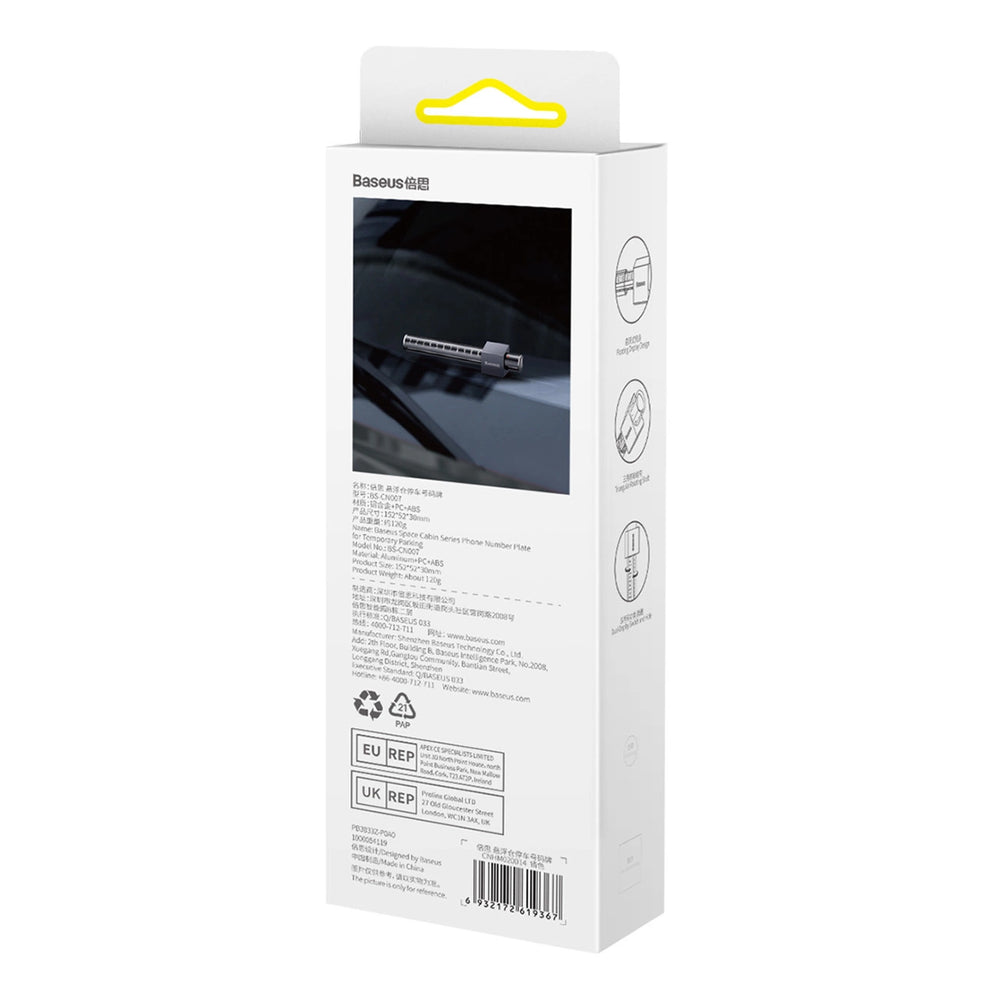 Baseus parkeringsskilt til telefonnummeret på det grå instrumentbræt
