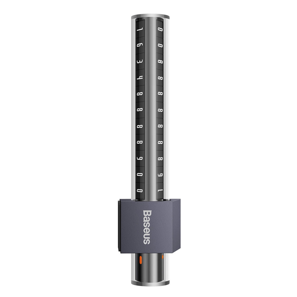 Baseus parkeringsskilt til telefonnummeret på det grå instrumentbræt .