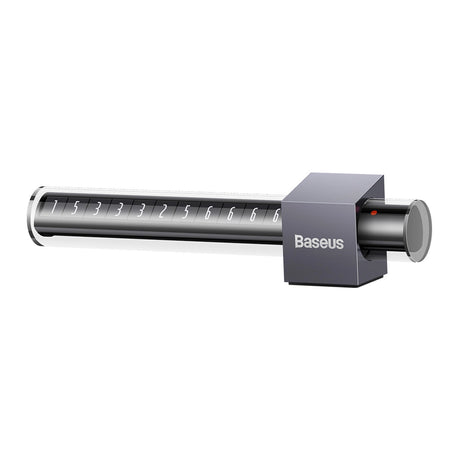 Baseus parkeringsskilt til telefonnummeret på det grå instrumentbræt