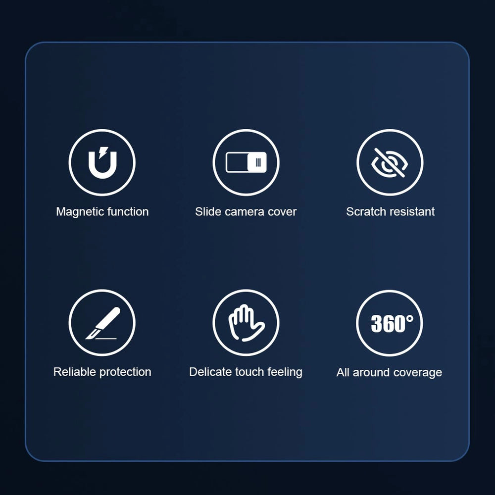 There is a sliding camera cover on the back of the case. Protects the camera glass against scratches during everyday use. When you need to record a video or take a photo, just slide the cover to reveal the lens.