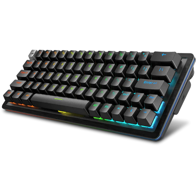 Gaming tastatur, størrelse: 60%-type, PC forbindelse: USB-A, aftageligt tastaturkabel: USB-C, polling rate: 1000 hz, Double-shot PBT keycaps, mekanisk Cherry MX Speed linear hot swappable switche, volume hjul, kompatibilitet: Windows, layout: Nordisk (Dansk - Svensk - Norsk - Finsk) QWERTY, Software: Base Camp, farve: sort.