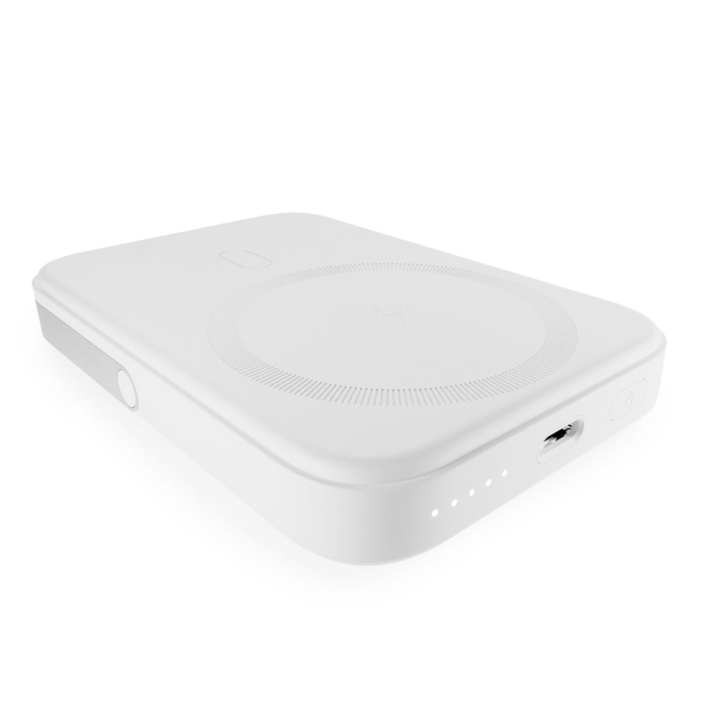 Powerbanken er kompatibel med MagSafe-teknologi og er også kompatibel med alle smartphones, der oplades trådløst: Du skal blot placere dem på den trådløse base for at starte deres opladningscyklus.