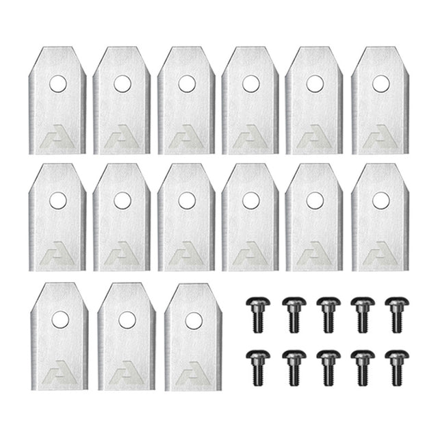 The Blade Set for Anthbot Genie 1000/3000 mowing robots includes 15 double-sided titanium-coated stainless steel blades and 10 mounting screws for long-lasting durability and precise cutting. It's a practical set that allows you to quickly replace worn parts and keep your machine in optimal condition.