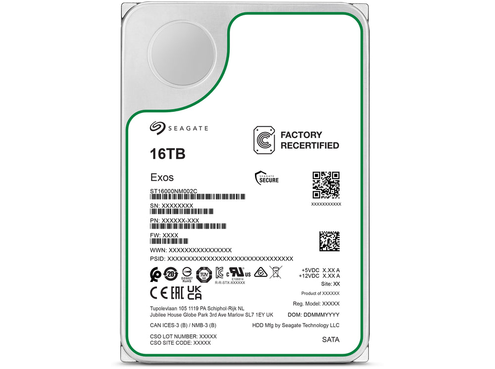 Seagate Exos Harddisk ST16000NM002C-FR 16TB SATA-600 7200rpm - FACTORY REFURBISHED .
