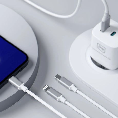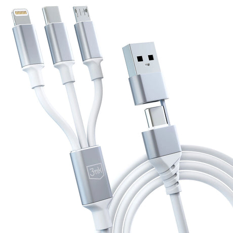 3mk Hyper Cable 3in1 USB-A - USB-C / USB-C - micro USB - Lightning 1,5m - hvid