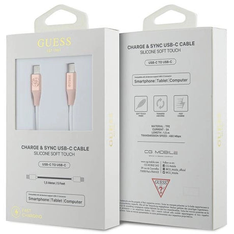 Guess Ebossed Logo USB-C / USB-C Kabel 1,5 m Hurtig opladning - Pink