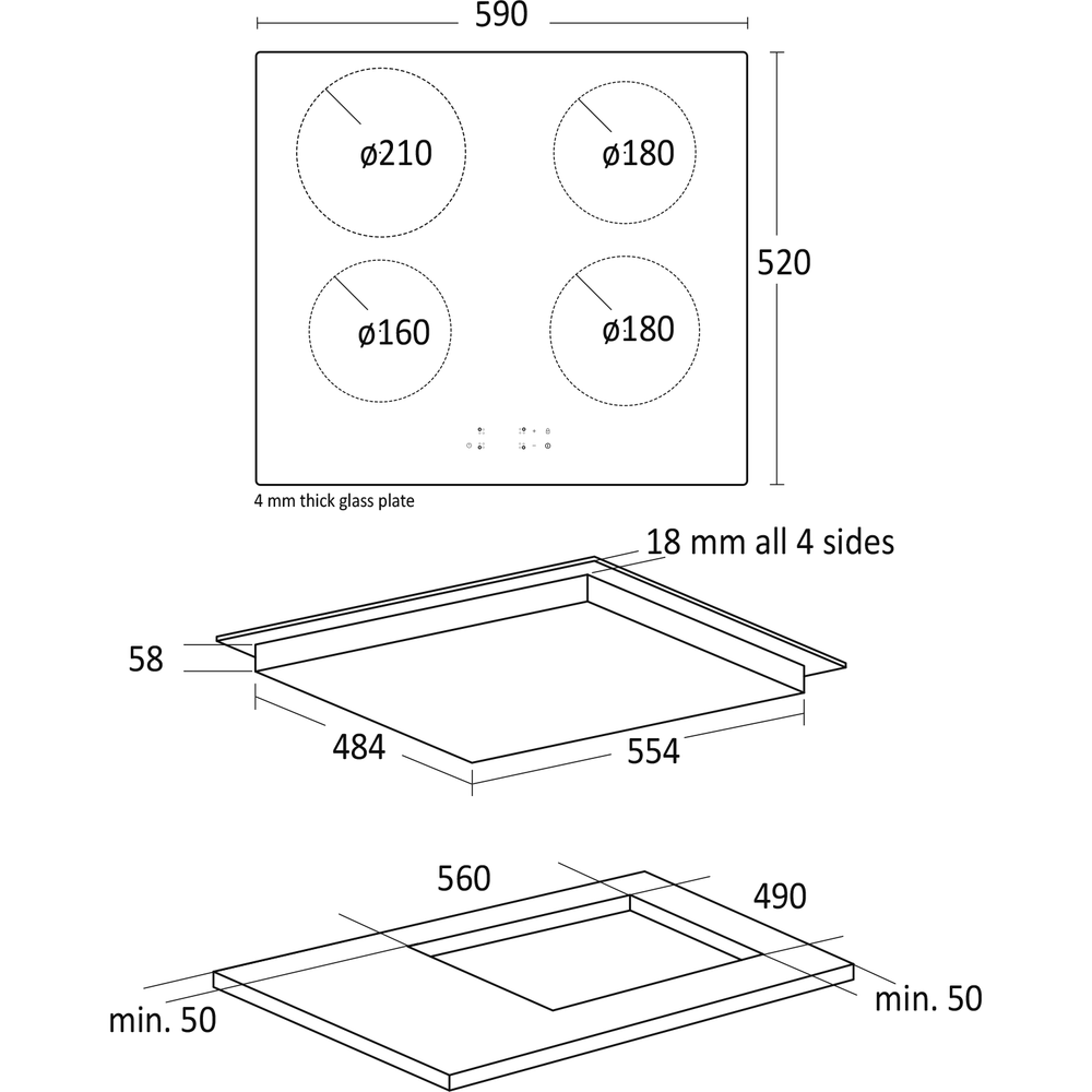 Glaspladen har facet kanter og er enkel design med fingertouch og samtidig nem at holde ren.
