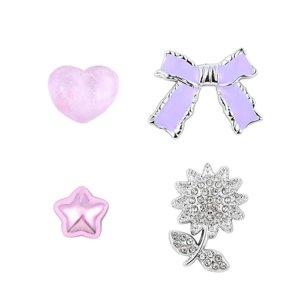 Disse dekorative charms er perfekte til at sætte et personligt præg på din mobiltelefon, dit cover eller andre ejendele. Hvert sæt indeholder fire unikke charms, der er fremstillet af enten metal eller plast og har en stærk 3M-klæbende bagside for sikker fastgørelse. Disse charms er populære blandt modeentusiaster og trendsættere, og giver et stilfuldt udtryk.