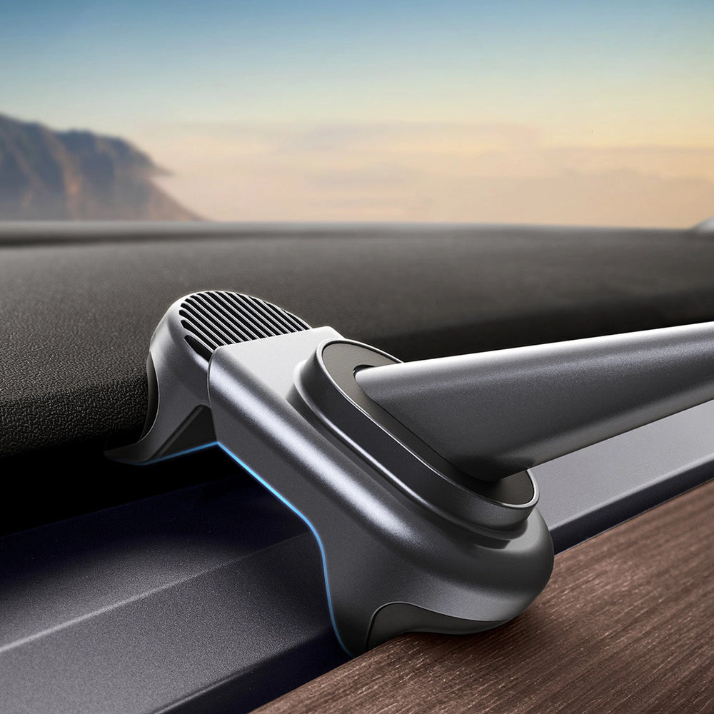 The Baseus car phone holder is an accessory for anyone who uses a phone, GPS navigation and a headset while traveling by car! You can place the holder in the cockpit of Tesla Model 3 or Tesla Model Y. In addition, the "arms" of the holder and the head are covered with a soft-touch, strong rubber, thanks to which they hold the phone stably during the journey. All this is possible without the use of any wires - this model is equipped with solar panels made of monocrystalline silicon - so it is powered by solar energy. So it will be perfect for the latest phones with large screens. The holder does not limit visibility while driving - unlike other models mounted on the windshield.