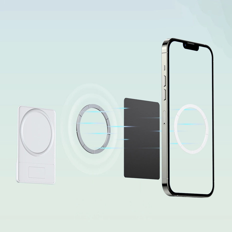 The stand is magnetically mounted to the phone housing. Thanks to this, and thanks to only four millimeters of width of the stand, it will not cause problems with wireless charging.