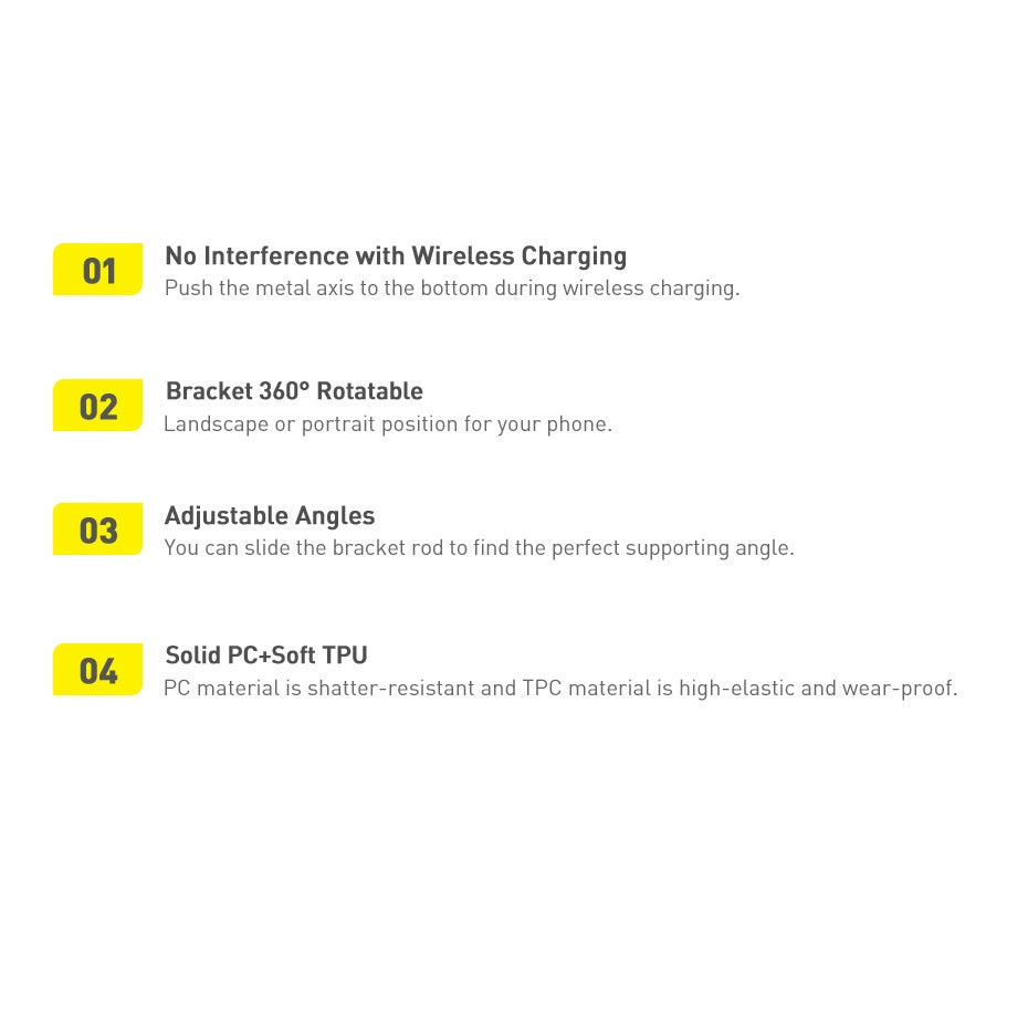 Enjoy the convenience of the Baseus stand anywhere! Thanks to it, you will be able to comfortably watch your favorite series on the train, bus or outdoors. Folding stand allows you to set the phone in a vertical and horizontal position.