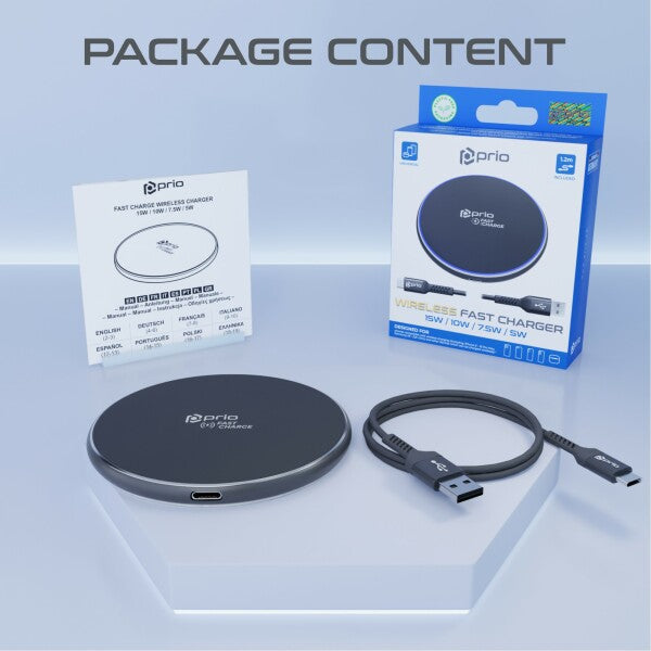 prio Trådløs hurtigoplader 15W (USB C) sort .
