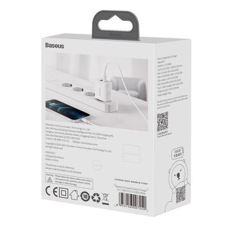 Baseus Kompakt hurtigoplader USB / USB Type C 20W 3A Strømforsyning Quick Charge 3.0 hvid (CCXJ-B02)