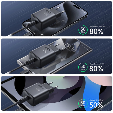 Joyroom JR-TCF23 netværksoplader USB-C 25W SFC / PPS / PD - sort + USB-C / USB-C kabel 1m