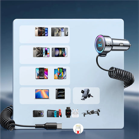 Joyroom JR-CL07 72W 3in1 Biloplader med 1,6m USB-C-kabel Sort