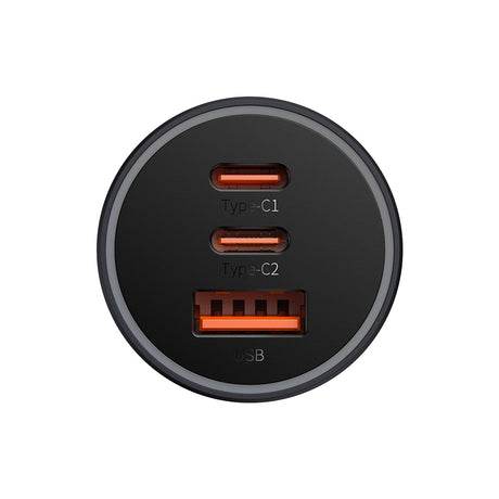 Baseus Golden Contactor Pro biloplader USB-A + 2x USB-C 65W mørkegrå (CGJP010013)