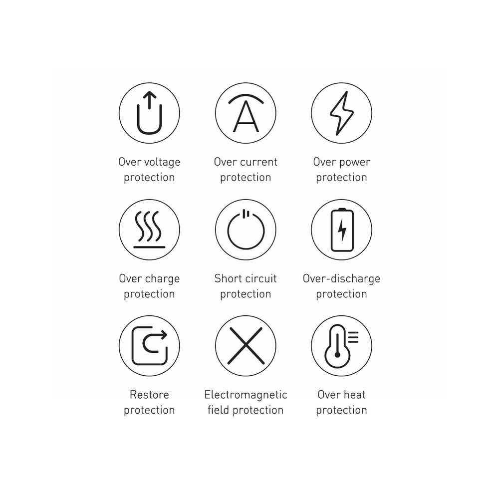 - Outputs: USB1 / USB2 18W (5V / 3A , 9V / 2A, 12V / 1.5A); USB-C 20W (5V / 3A, 9V / 2.22A, 12V / 1.5A)