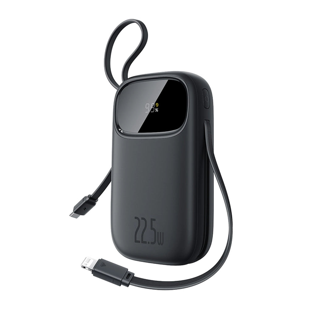 Baseus EnerFill FC31 10000mAh 22.5W Powerbank med digitalt display og 2 indbyggede kabler (USB-C + Lightning) - sort .