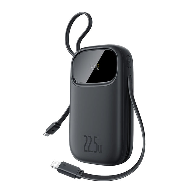 Baseus EnerFill FC31 10000mAh 22.5W Powerbank med digitalt display og 2 indbyggede kabler (USB-C + Lightning) - sort