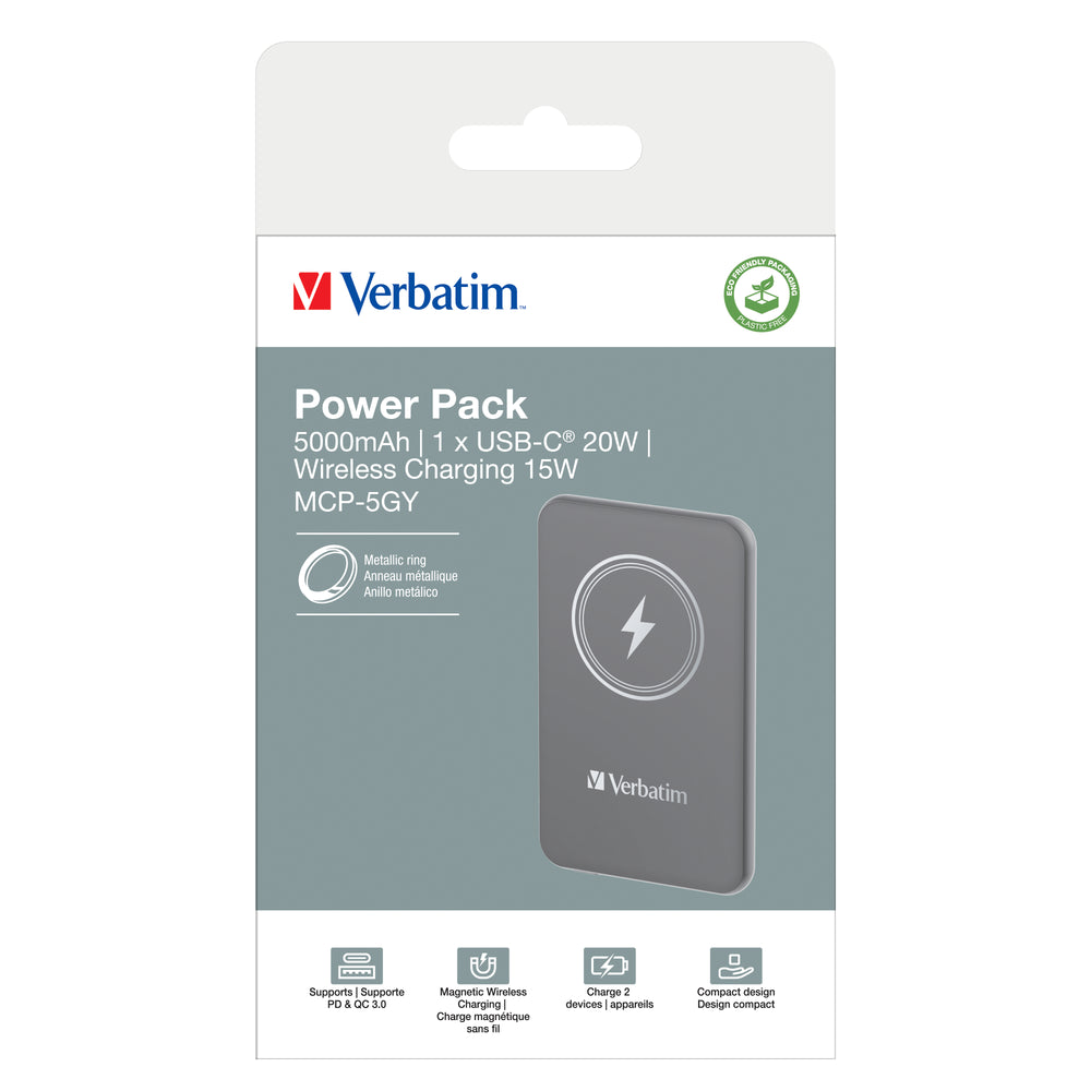 Verbatim Charge 'n' Go Lithium polymer (LiPo) 5000 mAh Trådløs opladning Grå .