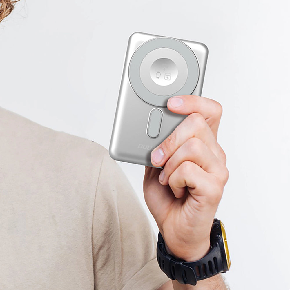 Dudao K29 10000mAh PD 20W MagSafe Powerbank with Metal Case, Stand and Built-in USB-C/ Lightning Cables - Silver