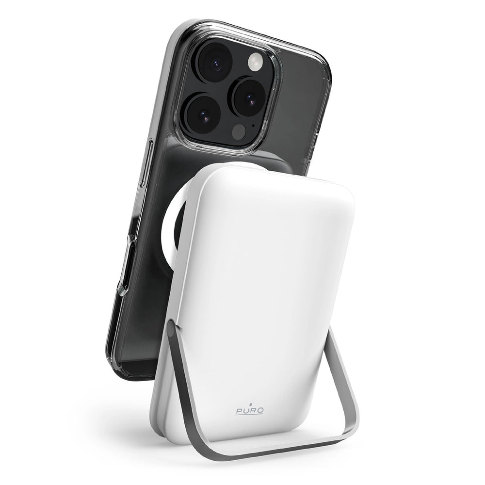Puro 10000mAh MagSafe Wireless Power Bank with Aluminum Stand - White