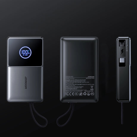 Joyroom JR-PR1 10000mAh 22.5W Powerbank med indbygget indtrækbart USB-C-kabel - sort