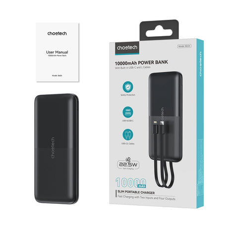 Choetech PD5022 70W EU/US/AUS/UK Travel Adapter med indbygget USB-C-kabel - sort