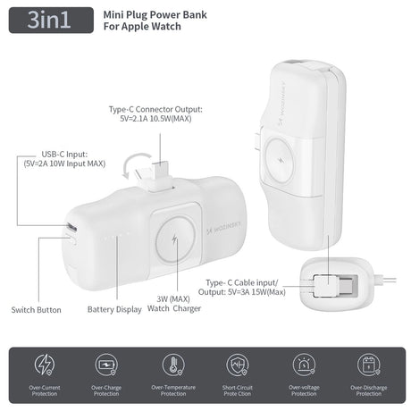 Tech-Protect LifeMag PB10 Powerbank med MagSafe 5000mAh 15W USB-C-port - hvid + USB-C-kabel