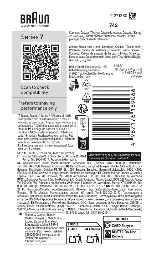 Braun Series 7 74 S, Barberingshoved, 1 hoved(er), Sort, Rustfrit stål, 18 måned(er), Braun, Series 7