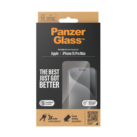 PanzerGlass ® Skærmbeskyttelse iPhone 15 Pro Max | Ultra-Wide Fit m. EasyAligner