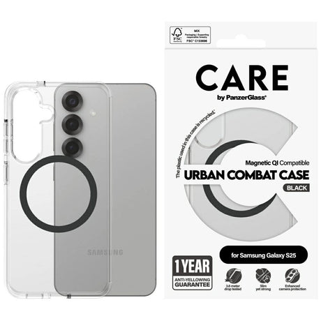 CARE af PanzerGlass Flagship Urban Combat Black QI Case til Samsung Galaxy S25 - Transparent