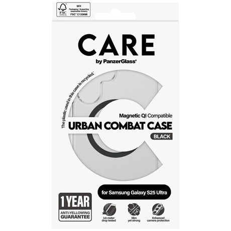 CARE af PanzerGlass Flagship Urban Combat Black QI Case til Samsung Galaxy S25 Ultra - Transparent
