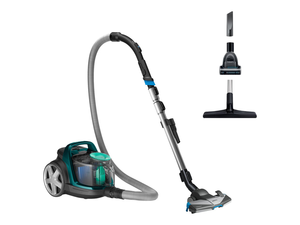 Philips 5000 series FC9555/09 Støvsuger uden pose. Maksimal indgangseffekt: 900 W. Type: Beholder vakuum, Rengøringstype: Dry, Støvbeholder type: Poseløs, Støvkapacitet: 1,5 L. Vakuum luftfiltrering: Allergifilter, Jordadskillelsesmetode: Filtrering, Støjniveau: 71 dB. Produktfarve: Grøn