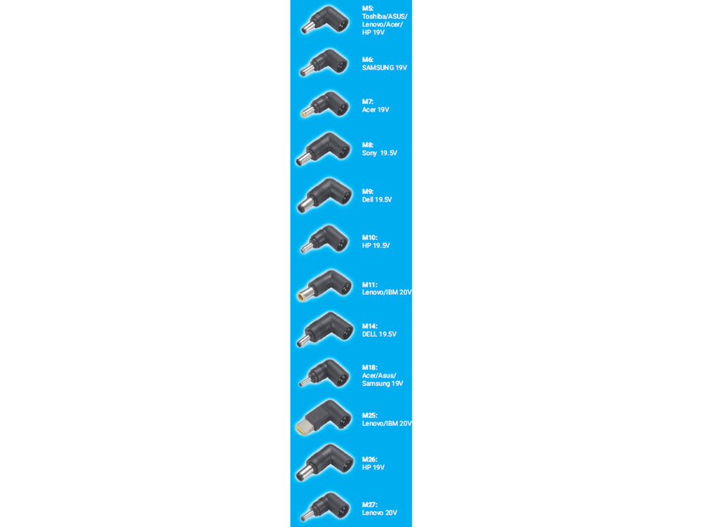 Laptop AC Adapter 90W EU+UK er et billigt alternativ til en original strømforsyning, og du kan ikke mærke forskel på ydeevnen. Stikket fra strømforsyningen kan tilpasses din laptop ved at udskifte med en af de mange medfølgende stiktyper.