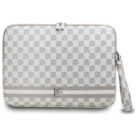 DKNY Sleeve Checkered Pattern Printed Stripes 16" Laptop Case - Beige