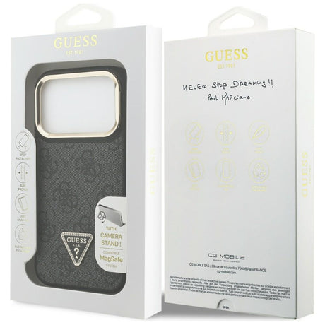 Guess 4G PU Triangle Logo & Stand Camera Magsafe Case til iPhone 17 Pro Max - sort