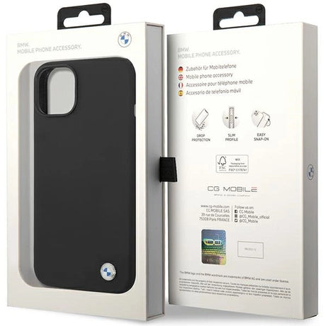 BMW Silicone Metal Logo Case til iPhone 15 / 14 / 13 - sort