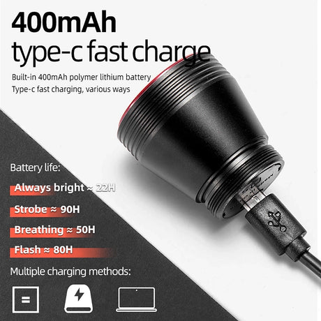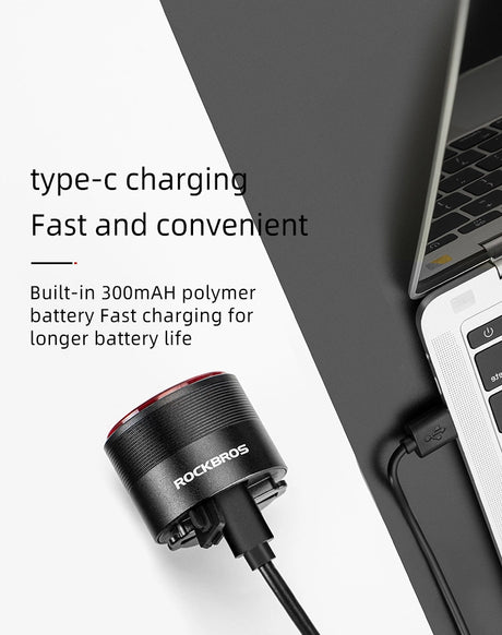 Rockbros Q1 baghjulslys 7 Farve LED + USB-C - USB-A-kabel - sort