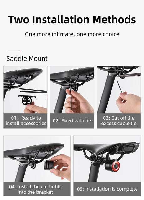 Rockbros Q5 baglys med intelligent stopsystem - sort