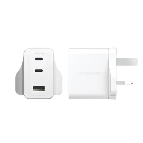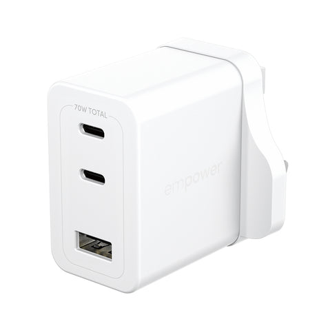 PanzerGlass empower by ® Turbo 70W Multiple Oplader inkl. 2 x USB-C + USB-A | UK Stik | Silver White