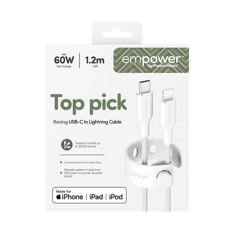 PanzerGlass empower by ® Racing 60W USB-C to Lightning Kabel | USB 2.0 | 1.2M | Silver White