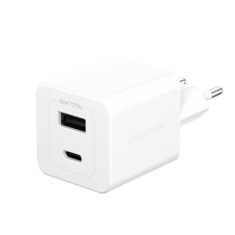 PanzerGlass empower by ® Turbo 35W Oplader inkl. USB-C + USB-A | EU Stik | Silver White