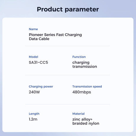 Joyroom Pioneer Series SA31-CC5 USB-C / USB-C 240W Kabel 1,2 m - sort