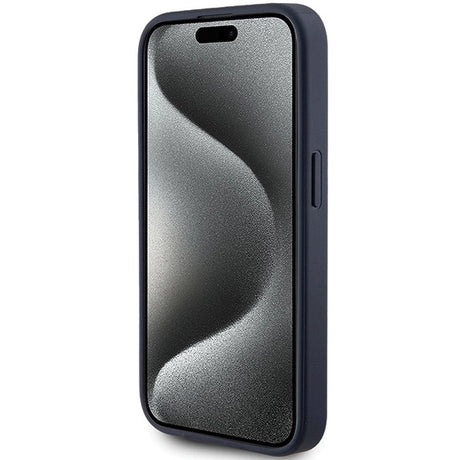 Guess 4G Triangle Metal Logo-hylster til iPhone 15 Pro - blå