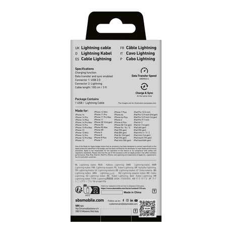 SBS TECABLEUSBIP589A USB-A - Lightning Cable - Blå